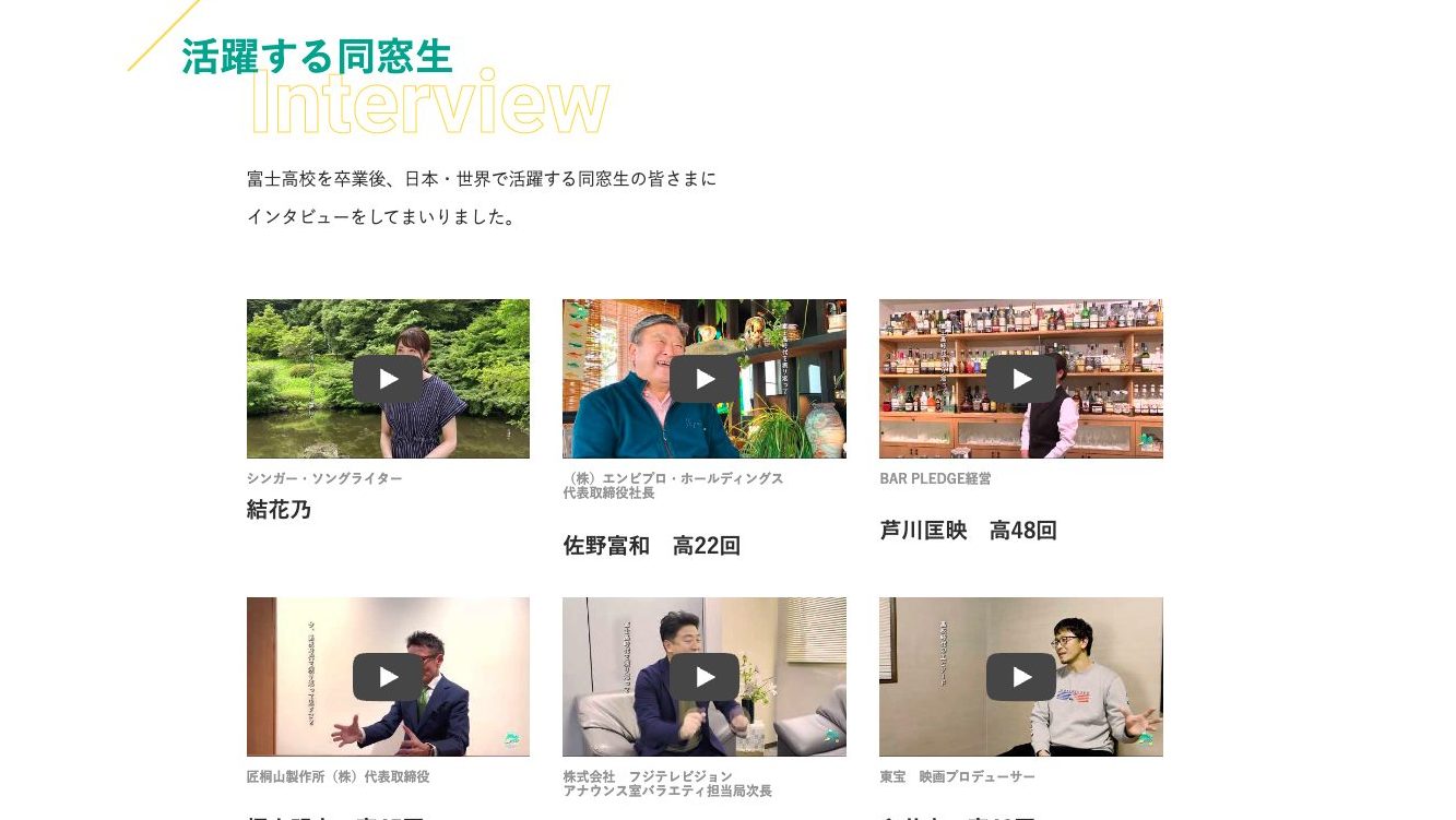 上記を踏まえ、寄付金の使用用途を明記。そして、現役生の皆様の部活動や行事で活躍する姿、日本・世界で活躍する同窓生の皆様のインタビューを動画としてまとめ、掲載しました。