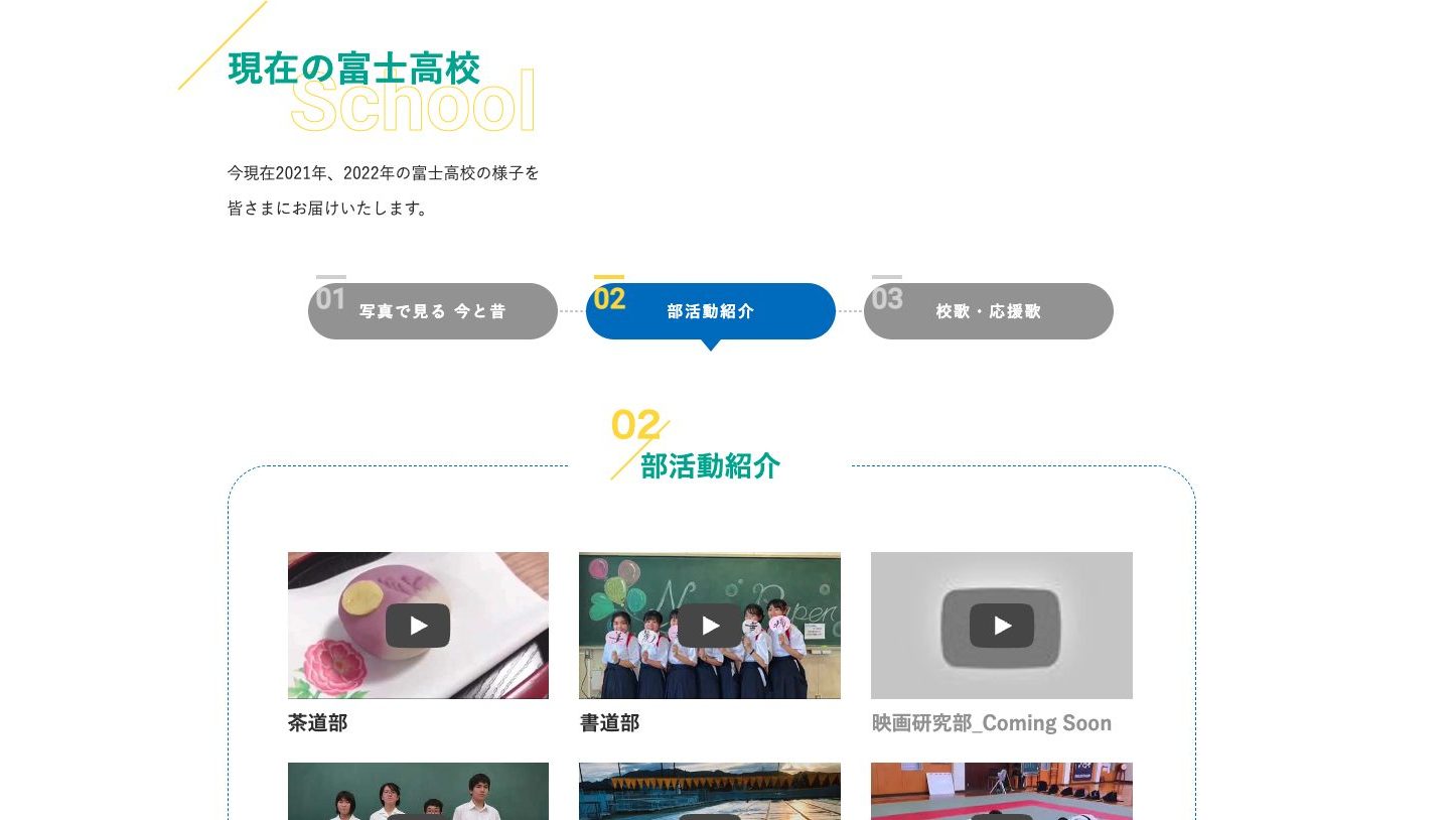 ページ内には具体的に寄付金の活用方法を明記し、部活動や行事で活躍される現役生の姿を動画で掲載。